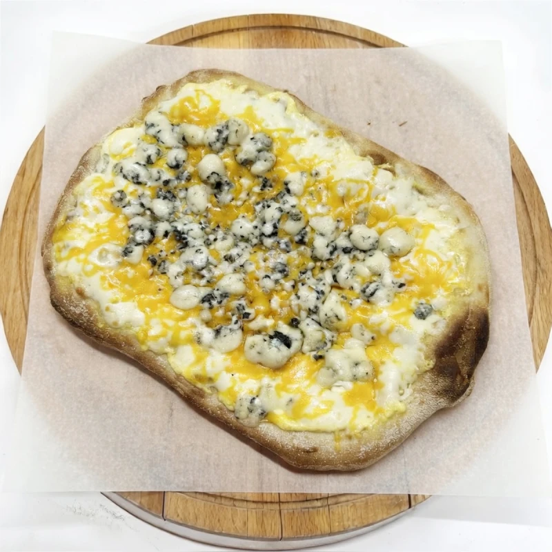 хрустящее тесто для пиццы, сыры гауда, моцарелла, чеддер и дор блю